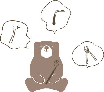 これから行うことを絵カードや歯の模型を用いながら説明します。使う器具を見せ、触ってもらい不安を取り除いていきます。